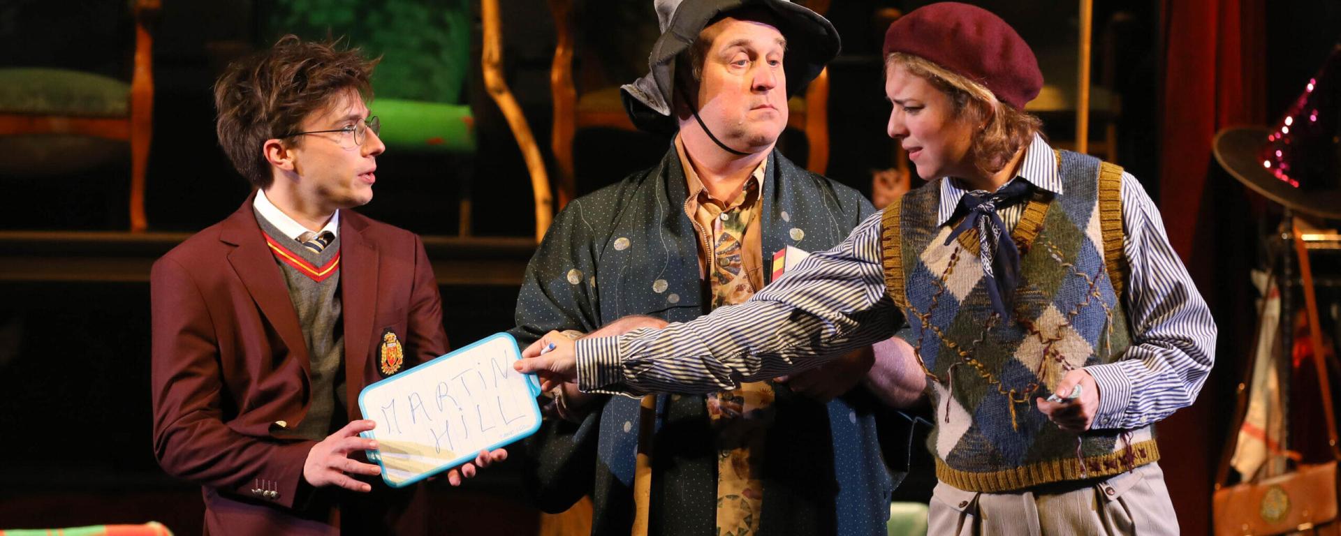 The stage, although quite small, is busy and as you settle down, there are details and nods to the original saga hidden everywhere around the stage, if you have the eye for it: owls tucked in every corner, brooms leaning against desks, walls and couches, a ghost light that weirdly ressemble the elder wand and a hat that you could swear could talk if put on the right head.